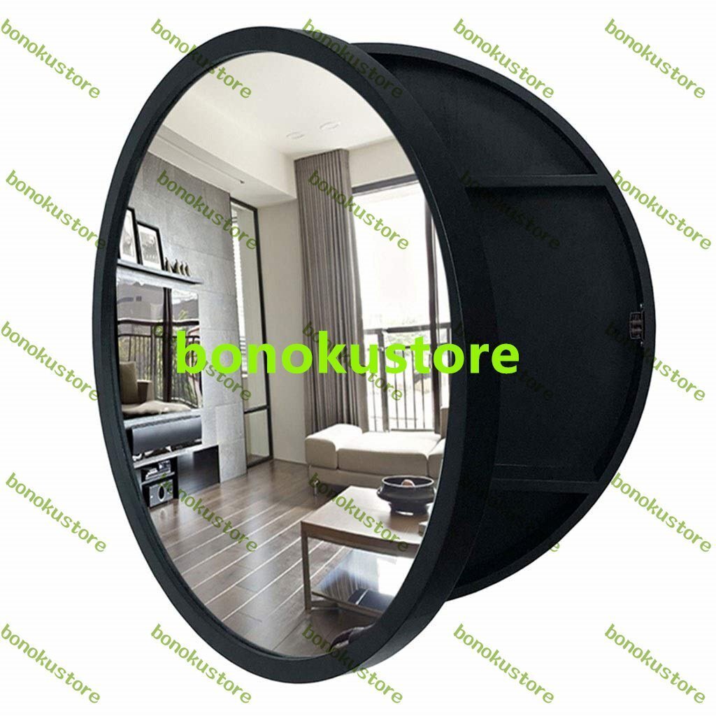 - 丸型ミラーキャビネットバスルームウォールミラー収納キャビネット付き寝室化粧鏡木製ミラーキャビネット防水 50cm
