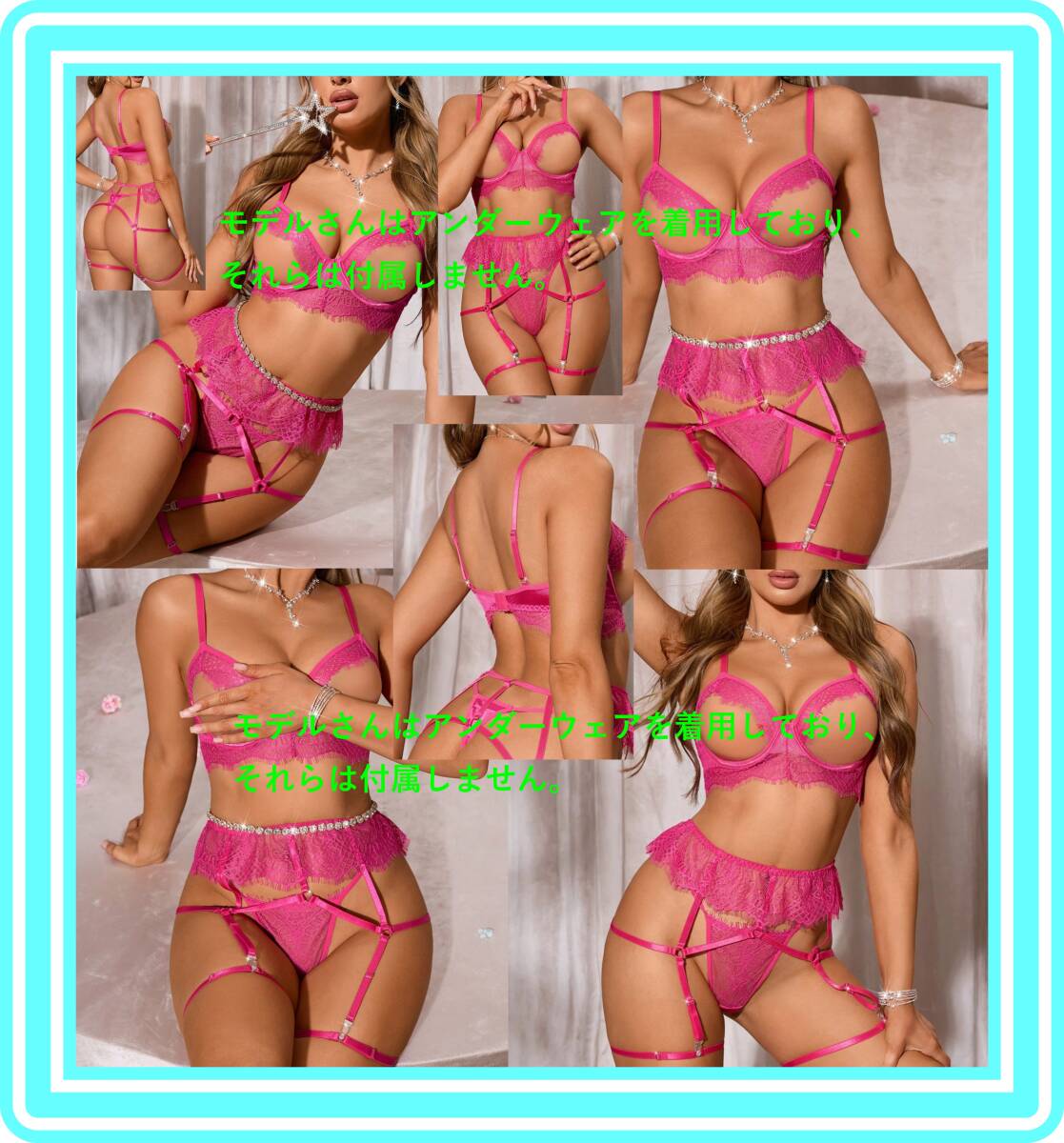 - ♥超素敵★サテン★アンダーワイヤー★ガーターランジェリーセット★ピンク★カットアウト★レース★レッグリング付♥L86S