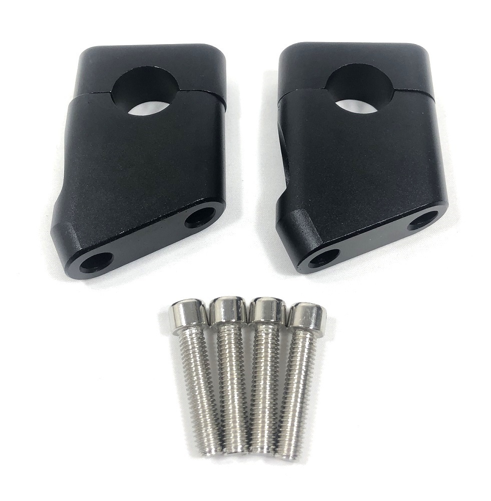 - バイク ハンドル アップ バー ライザー アダプター セット メッキ スペーサー 22mm ポスト ポジション ブラケット ブラック 黒 KRB009