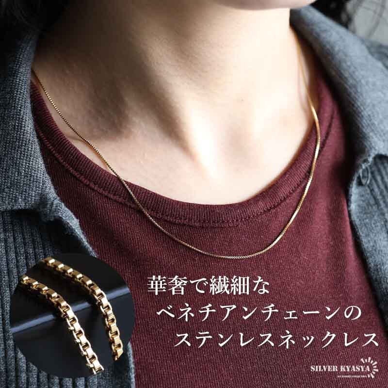 > (60cm) ステンレス 極細 ベネチアンチェーンネックレス ボックスチェーン ゴールド 18K GP 女性 金属アレルギー対応