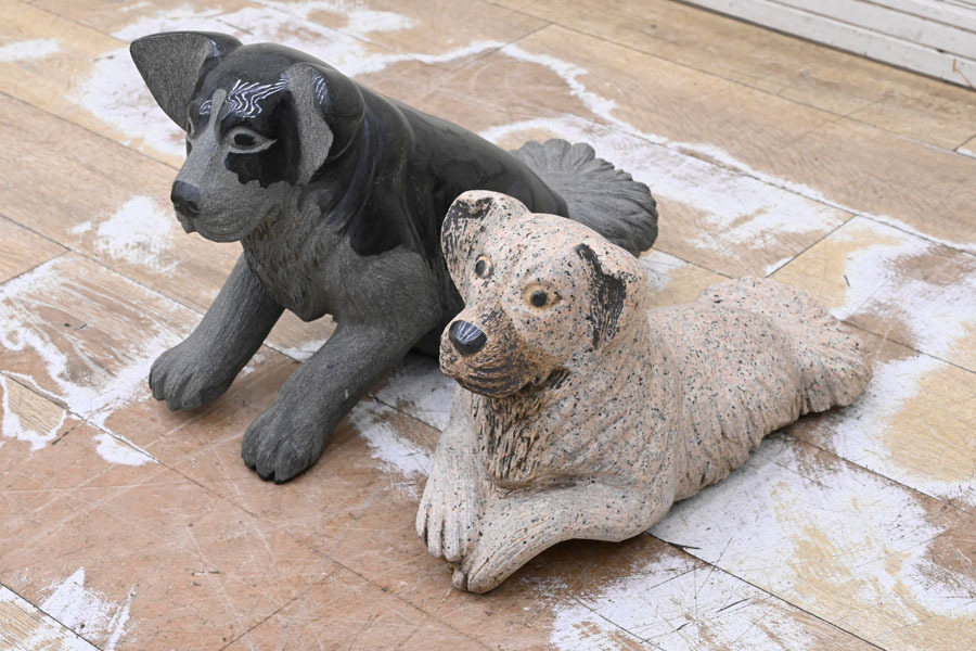 - NY012 石 彫刻 犬 置物 飾り物 2体セット 2匹セット 引き取り大歓迎