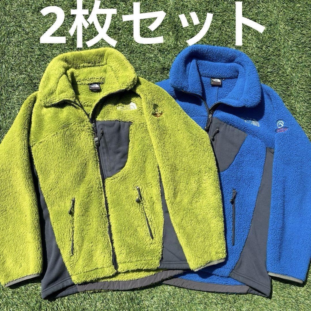 > 2枚セット S ノースフェイス サミット バーサロフトジャケット 緑 青 NA45501 フリース ボア パイル ブルゾン アウトドア 古着 男子 メンズ