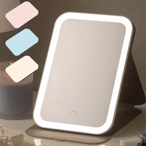 > 【明るさは無段階調光可能でシーンに合わせた照明でメイクがしやすい】 コンパクトミラー PUレザー LEDライト 明るさ無段階調光