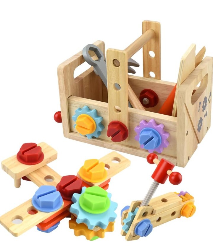 - 木のおもちゃ 工具 大工さん ツールボックス 知育玩具 とんかち ネジ おままごと モンテッソーリ 工具セット