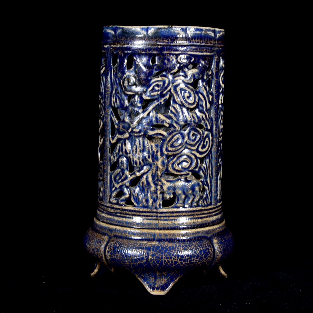 - 唐物 唐 大周時期 柴窯 鏤空 三足筆筒 陶芸 磁器 古陶磁器 中国美術品 時代物 D63