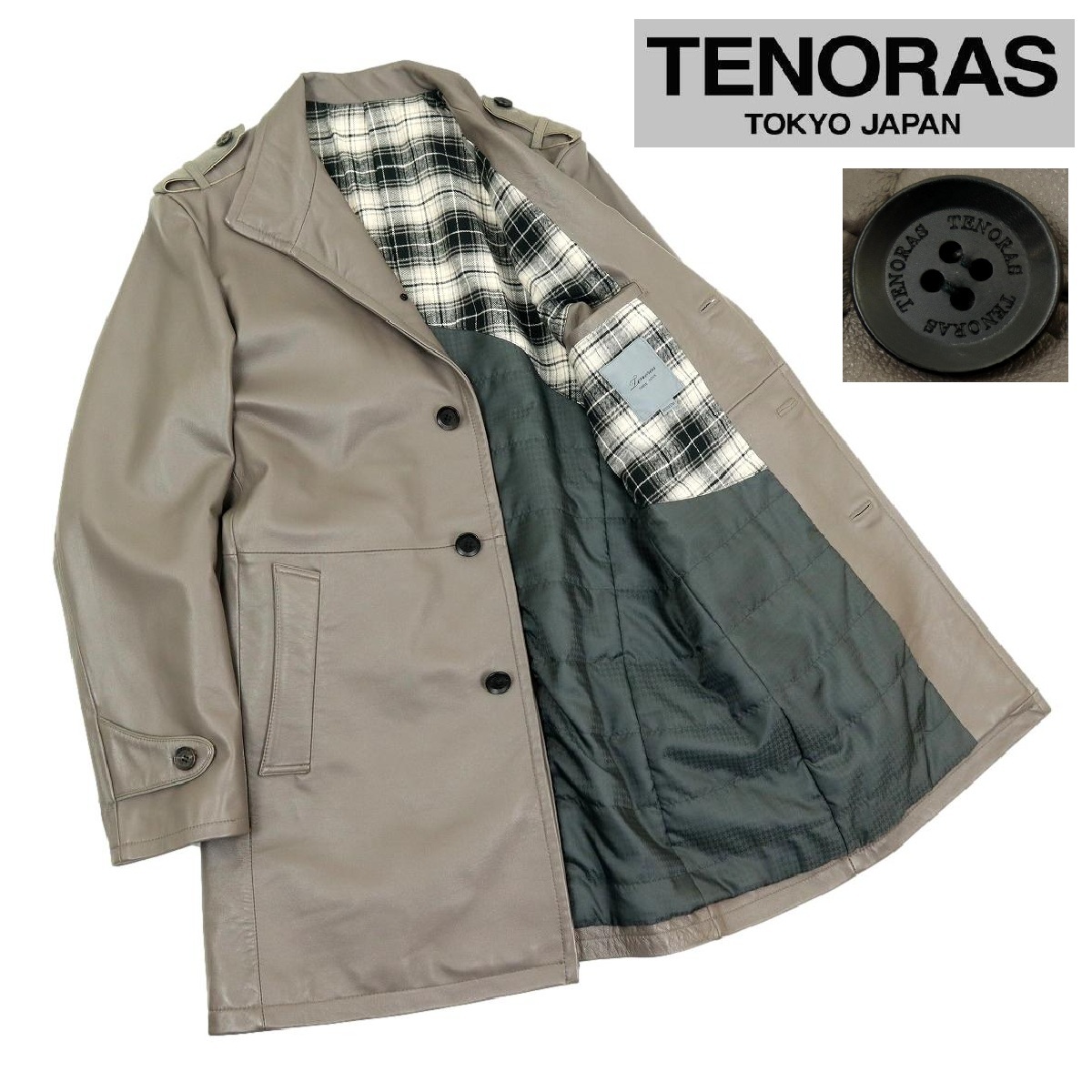 - 【S3443】【新品同様】【羊革】MEN'S TENORAS メンズティノラス レザーコート オールレザー 裏地チェック柄 サイズM