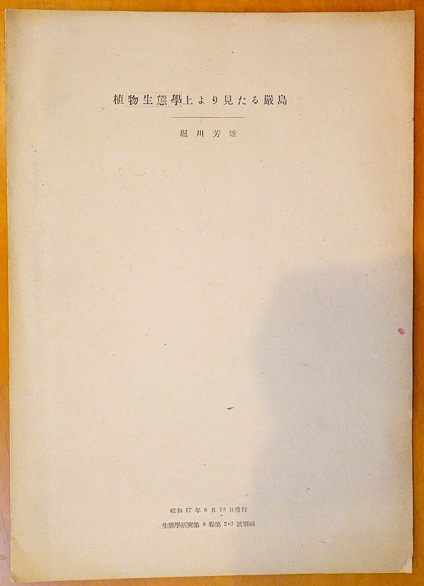 - 植物生態学上より見たる厳島 堀川芳雄 昭和17年 検:広島県 瀬戸内海 自然 海浜海中植物群 山地植物群 森林植物群 原始林赤松