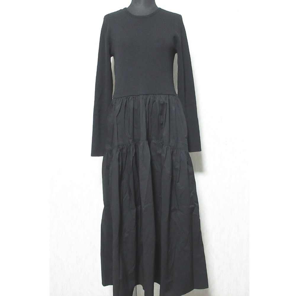 - 美品 24AW SHIPS シップス 手洗い可能 リブ ニット 長袖 × 布帛 ギャザー スカート ワンピース 2WAY 314-55-0774 ブラック