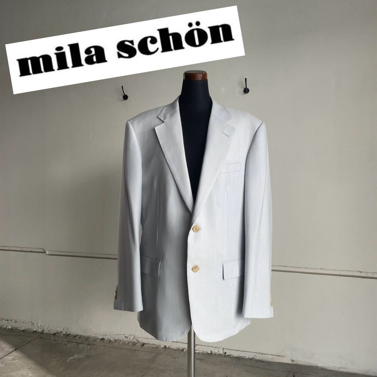 - ミラショーン テーラードジャケット ストライプ 水色 カシミヤ100% シングル