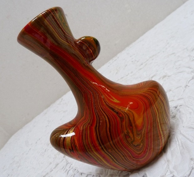- (☆BM)オレンジ マーブル/ゴールド 小ぶり フラワーベース 花器 花瓶 一輪挿し 高さ14.3㎝ 置物 オブジェ