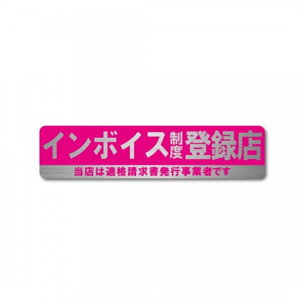 - インボイスステッカー 登録店 ヘアライン ステッカー ピンク 新品 150mm×35mm 長方形 適格請求書事業者制度 耐候 防水 高級