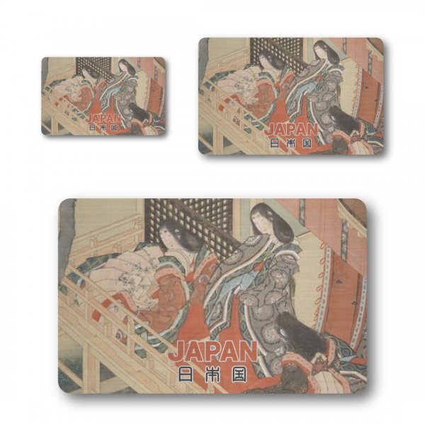 > 日本製 浮世絵 ステッカー 3点セット 四角 女性 ヘアライン マット 新品 日本の美しさ お土産 プレゼント おしゃれ シンプル 和柄 着物
