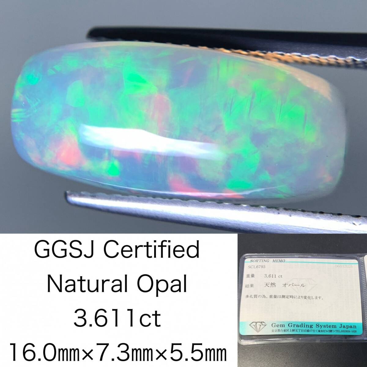 - オパール 3.611ct 宝石ソーティング付き 16.0×7.3×5.5 天然 ルース( 裸石 ) 4314Y