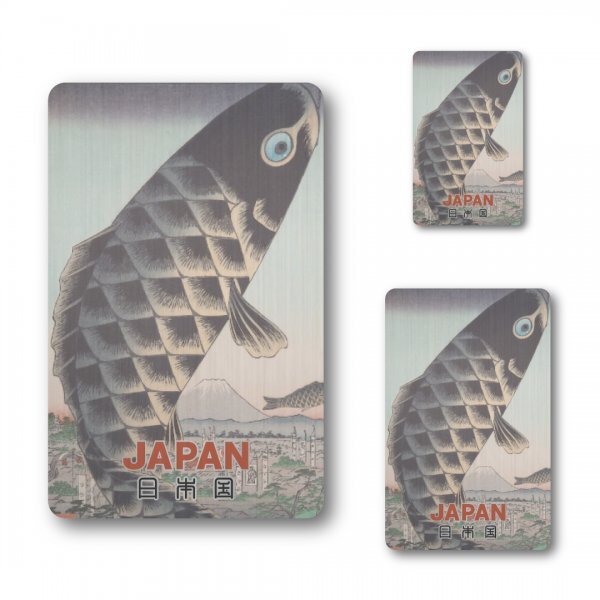- 日本製 浮世絵 ステッカー 3点セット 四角 こいのぼり ヘアライン マット 新品 日本の美しさ お土産 プレゼント おしゃれ シンプル 和柄