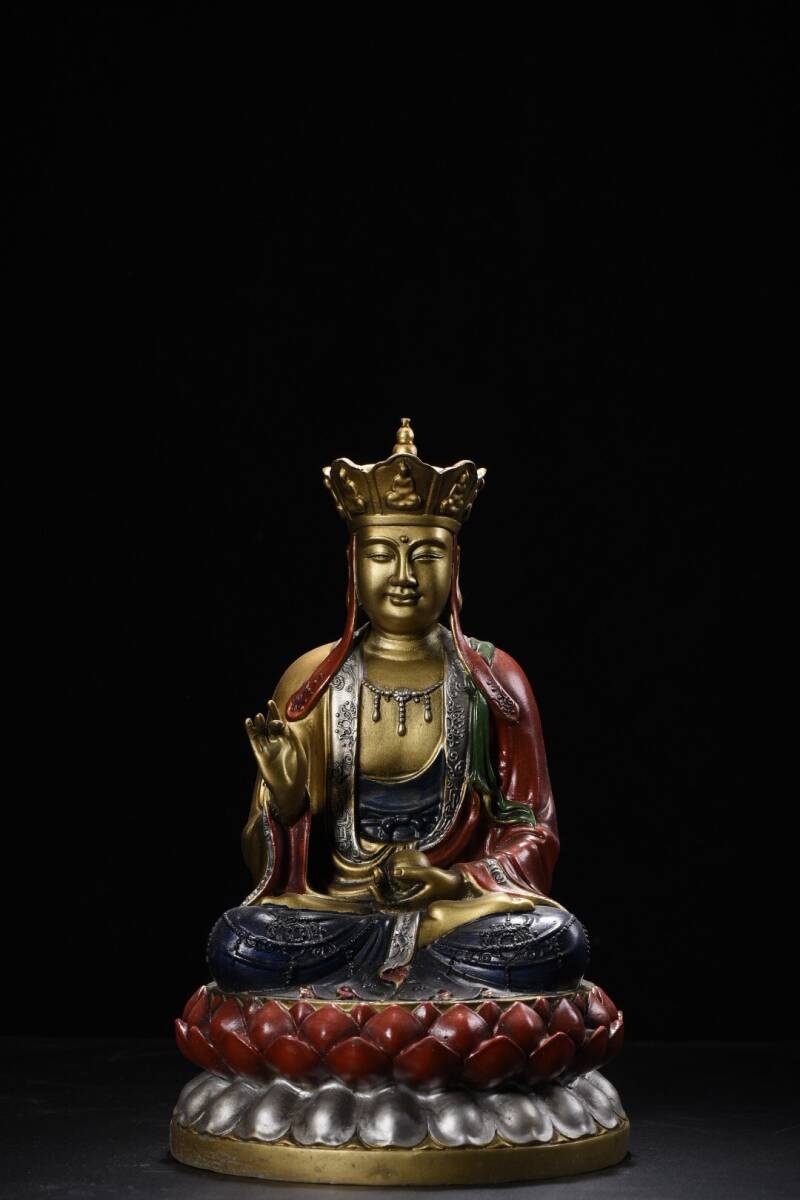 - 【超珍館蔵】銅製 金鍍 彩繪 地藏王菩薩像 置物 古賞物 古美術品 稀少珍蔵品