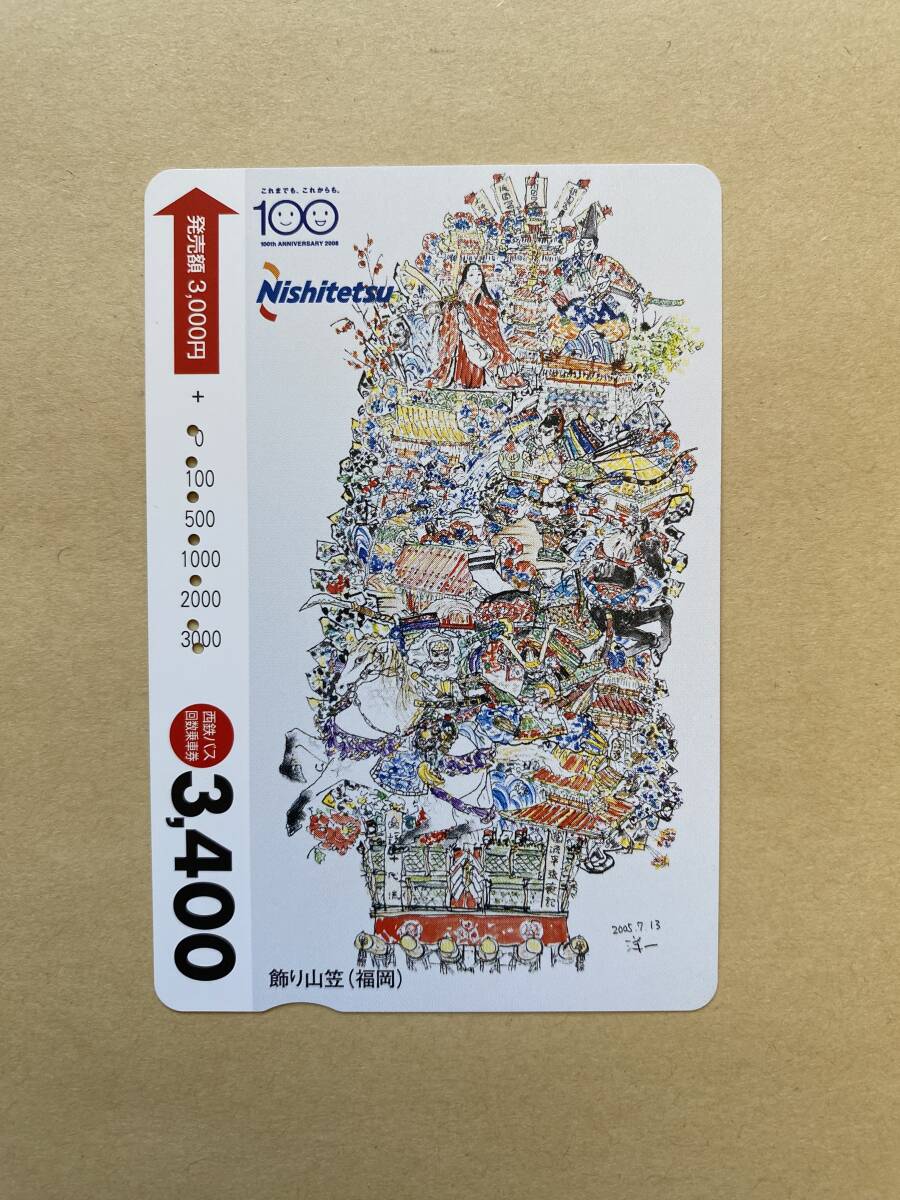 - 【使用済】 バスカード 西鉄バス 飾り山笠 (福岡) 西鉄100周年記念 2008