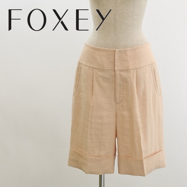- 美品◆FOXEY BOUTIQUE フォクシー ブティック リネン100% センタープレス タック ショート ハーフ パンツ ペールピンク 40