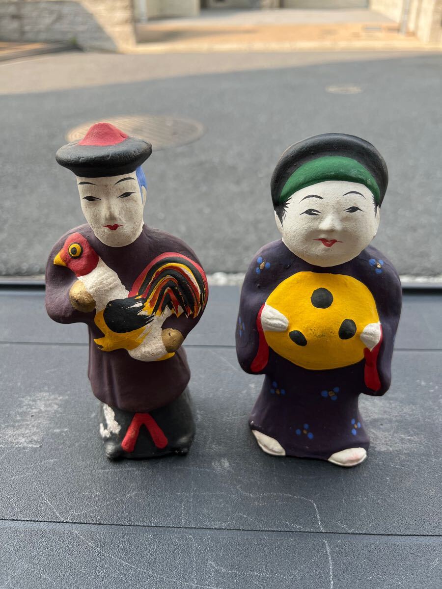 - 古賀人形 郷土玩具 置物 民芸品 土人形 伝統工芸 民藝 昭和レトロ 阿茶さん おかげ参り 長崎 小川亨 2体セット
