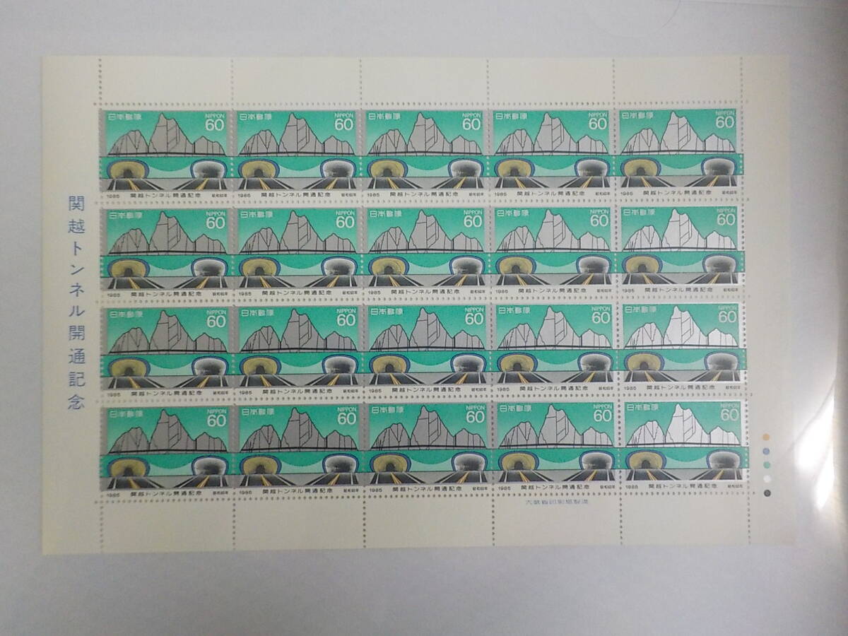 - 関越トンネル開通記念 1985年 トンネルと断面図 / 60円切手シート 未使用