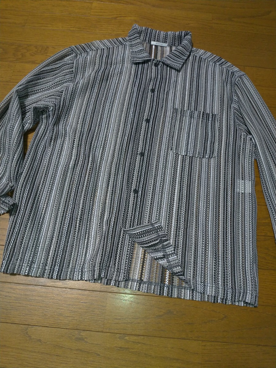 > ベイフロー BAYFLOW 長袖シャツ/透かし編み/バルファレースシャツ/涼感/春夏 モノトーンストライプ サイズ4 メンズ リラックスフィット