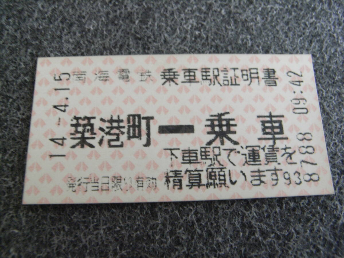 - 南海電気鉄道 築港町駅 乗車駅証明書 平成14年4月15日発行 南海電鉄