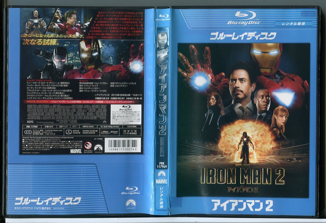 > アイアンマン 2/ブルーレイ BD 中古 レンタル落ち/ロバート・ダウニー・Jr./グウィネス・パルトロウ/c4560