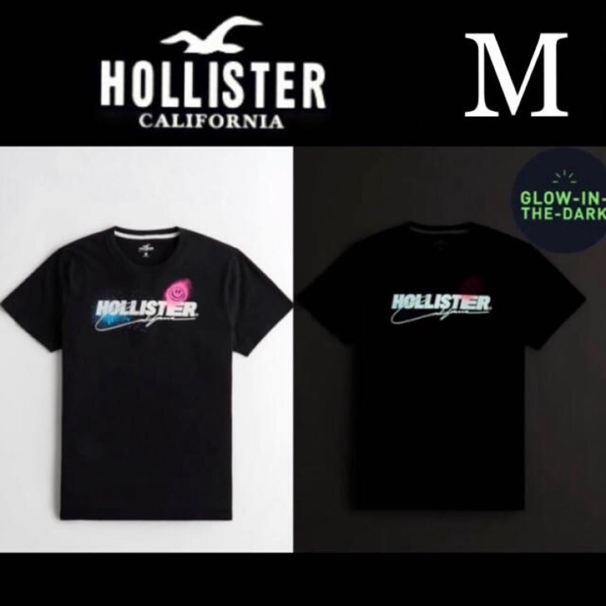 - 新品タグ付き☆HOLLISTER 発光プリント半袖Tシャツ M 黒 ブラック ホリスター
