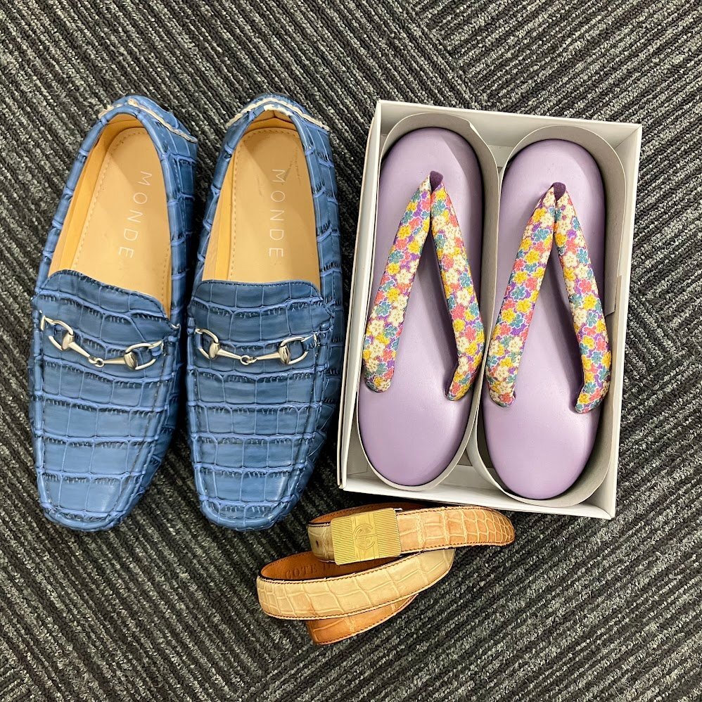 > ★☆靴 ベルト まとめ MONDE ドライビングシューズ S 雪駄 サンダル フリーサイズ COTE DE ROUEN ベルト 型押し レザー 80 中古☆★