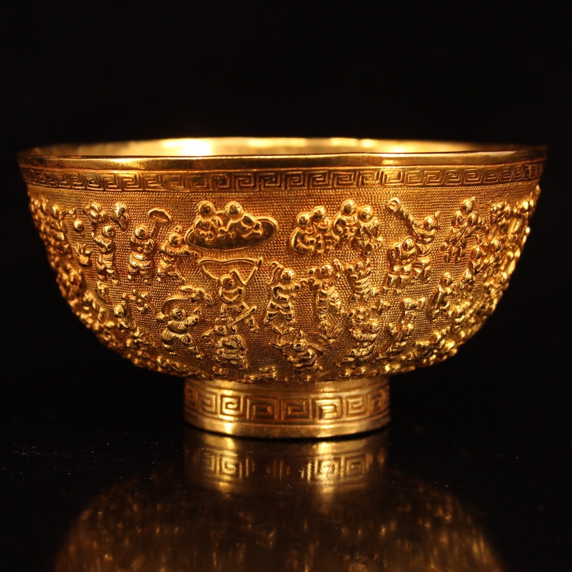 - 『館蔵珍品 銅製 塗金 百子紋 茶碗』置物 賞物 貴重物品 収蔵品 中国古美術