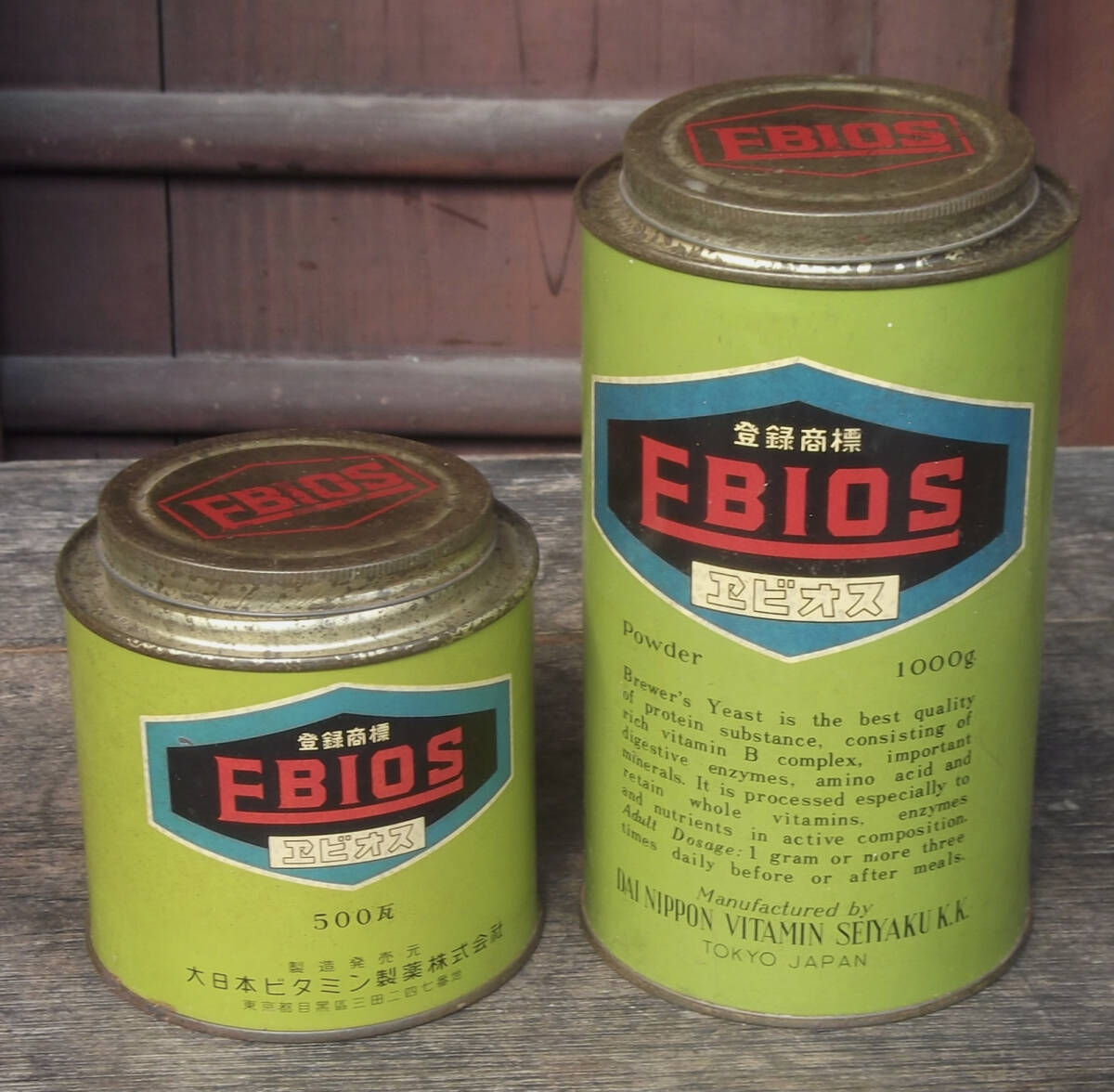 - ビンテージ ブリキ 空き缶 エビオス 錠剤 2種類 大日本ビタミン製薬株式会社 田辺製薬 検/ くすり パッケージ ラベル 健康食品 昭和 レトロ