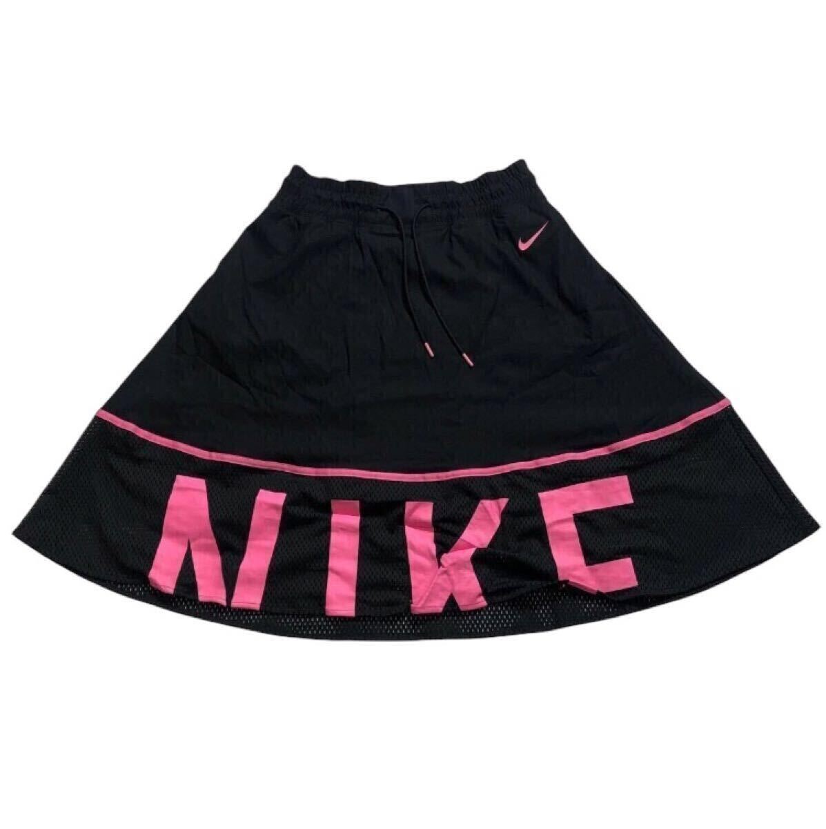 - 送料無料 ■ NIKE ナイキ ■ バイカラー スウッシュ ロゴ プリント メッシュ スカート ブラック×ピンク M