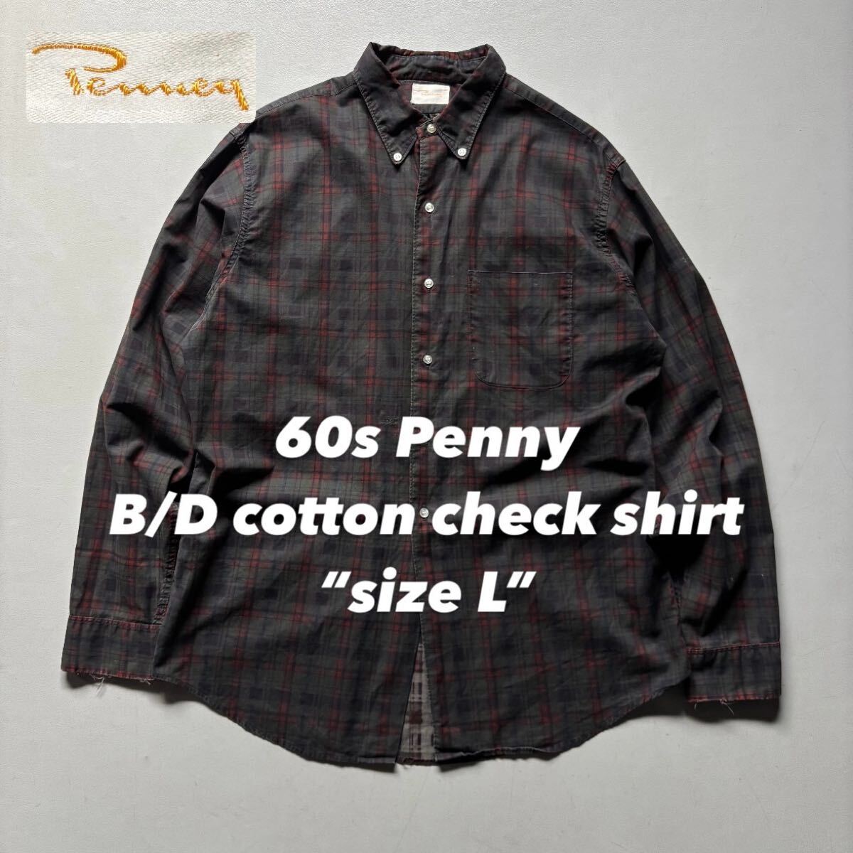 > 60s Penny B/D cotton check shirt “size L” 60年代 ペニー 3点留 ボタンダウンシャツ チェック コットン100% 長袖シャツ ヴィンテージ