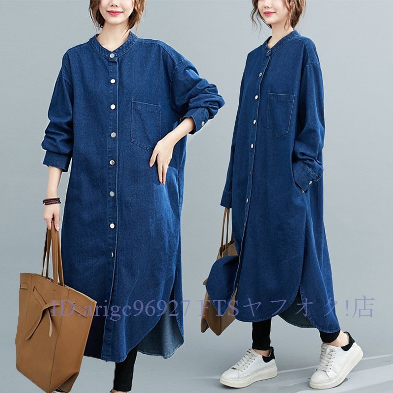 - ★新品デニム素材のマキシ丈ワンピ前開きで羽織物にも大きいサイズ銀色ボタンがかわいい長袖ワンピ上質お色選択可