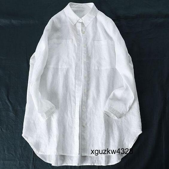 > 人気 上着 白色 Lサイズ 麻100% リネン 通気性抜群 ゆったりとした ブラウス ワイシャツ 大人可愛 オシャレ チュニック