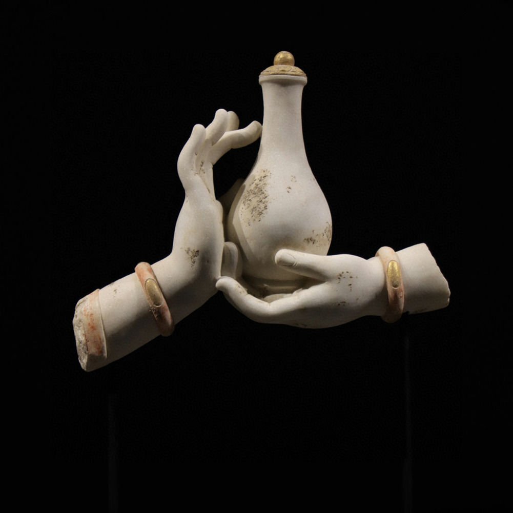 - ▼渡鶴羽▼A4557北斉時代 漢白玉仏手 漢白玉石細工彫刻★仏教古美術★仏像★細密細工★廃寺旧蔵★廃寺買出品