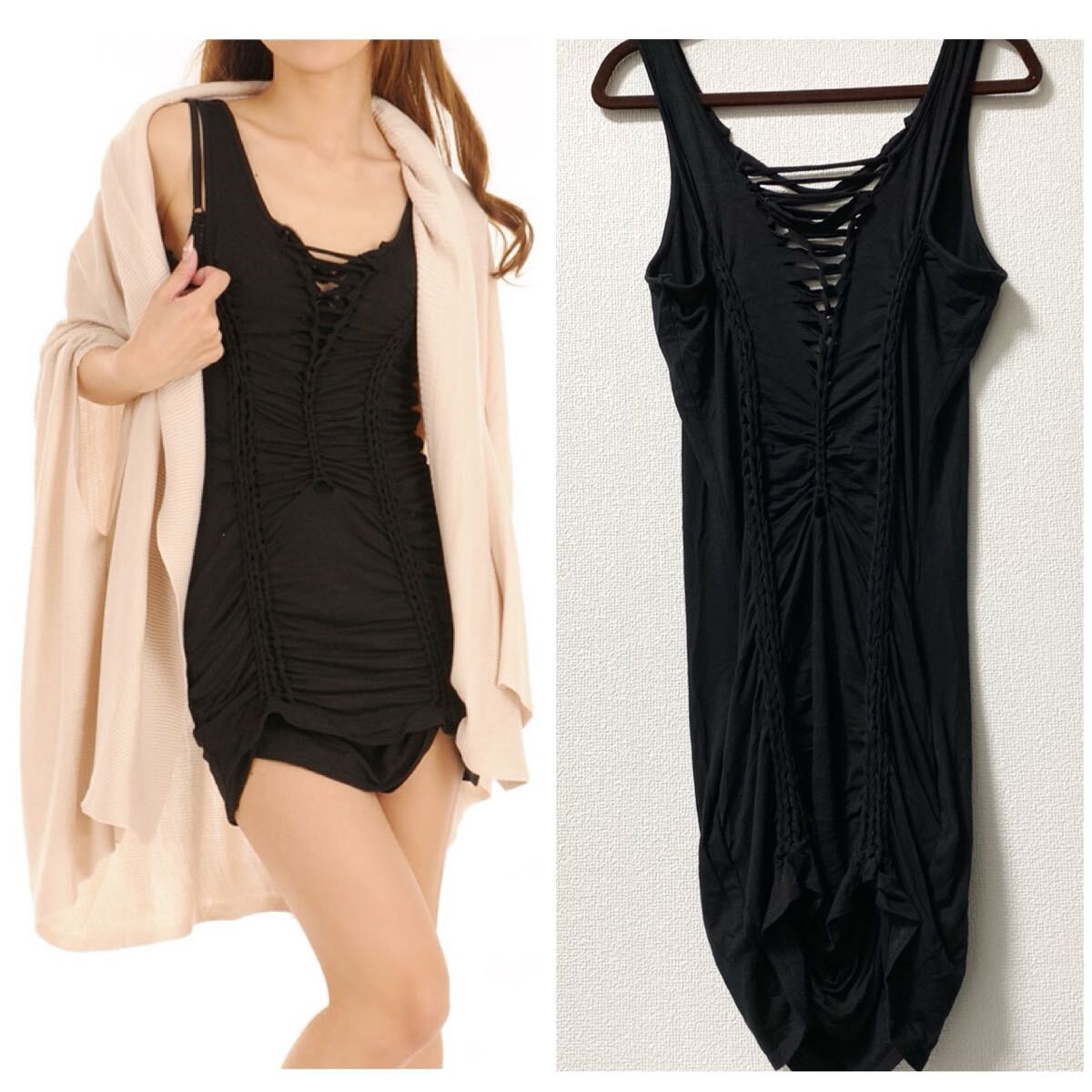 - LIP SERVICE ワンピース / リップサービス 黒 ブラック ミニワンピース ゴス ゴシック モード ロック ギャル 見せブラ 露出 カッティング