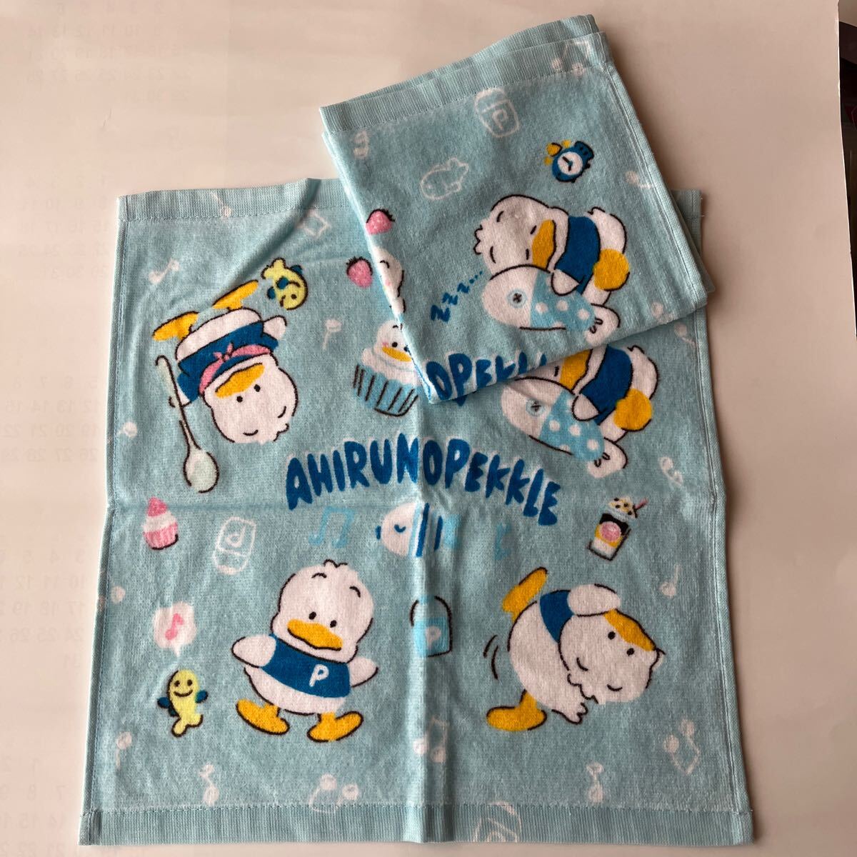 - サンリオ あひるのペックル ハンドタオル2枚セット サックス 水色 音符 スイーツ