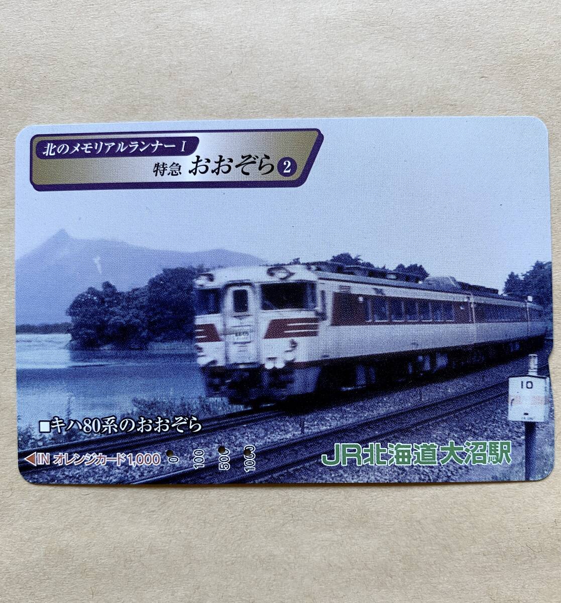 - 【使用済】 オレンジカード JR北海道 北のメモリアルライナー Ⅰ 特急 おおぞら ② キハ80系のおおぞら
