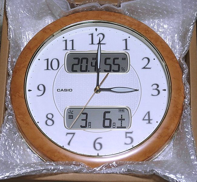 - ◆ 美品!送料込!壁掛け 電波時計 カシオ WAVE CEPTOR ITM-720NJ 木目調/日付/温度/湿度/照明/野鳥のさえずり時報 検ITM-800NJ/ITM-900FLJ