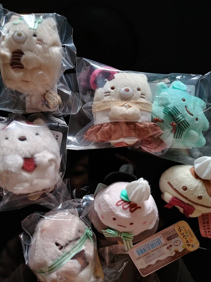 - ♪San-xすみっコぐらしコレクション♪レア?!限定含む喫茶すみっコでチョコレートフェアてのりぬいぐるみ7個セット(ねこ&ざっそう他)♪
