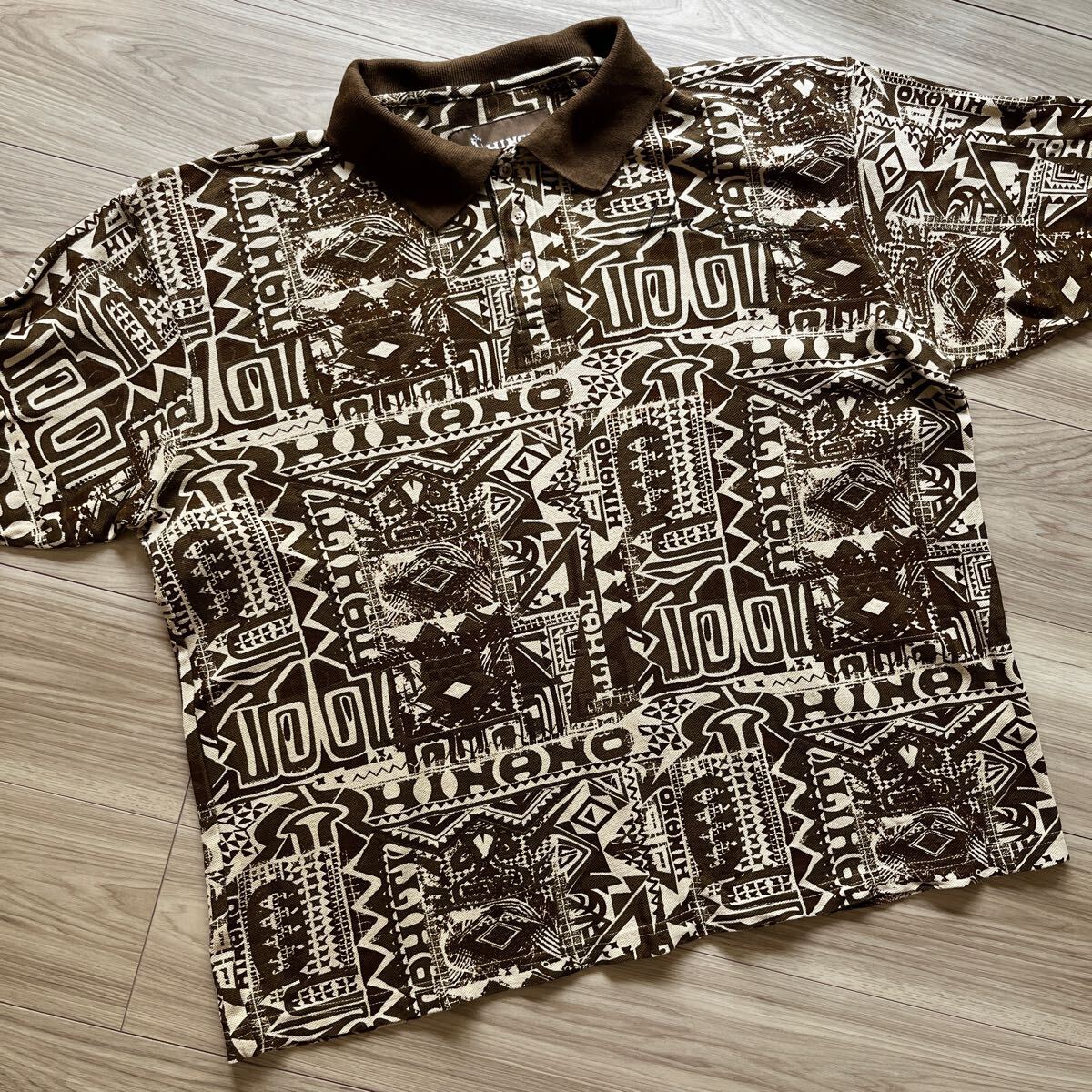 - アメリカ古着 HINANO TAHITI ポロシャツ TIKI柄 ビンテージ 半袖 XL