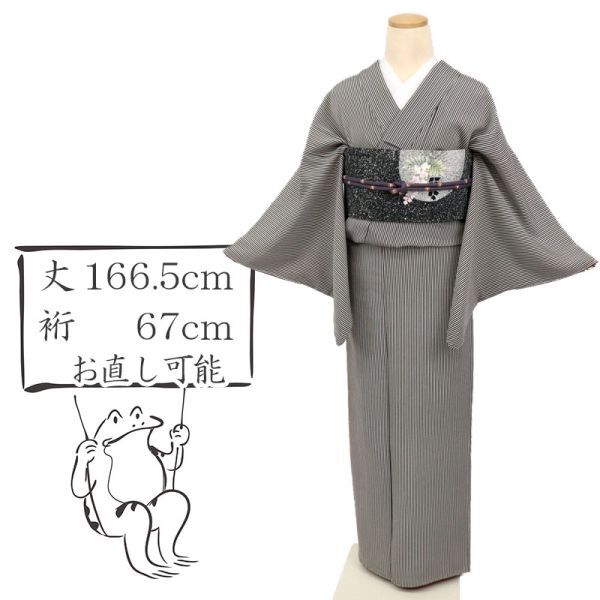 > 【小紋】 長尺 縞小紋 子持ち縞ストライプ 白黒モノトーン 袷正絹着物 KB12-17