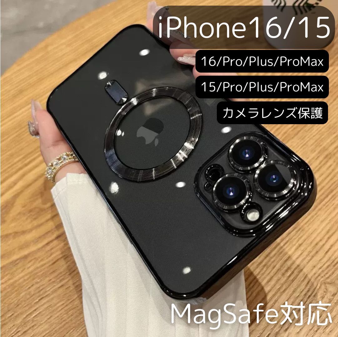 > ★ブラック・iPhone16 iPhone15 ケース Pro Plus ProMax magsafe マグセーフ スマホケース ガラスレンズ保護 全10色