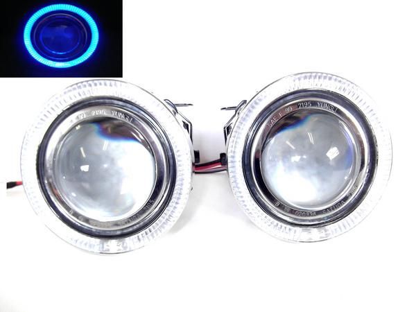 - 汎用 フォグランプ LED ブルー 青 イカリング プロジェクター フォグ ランプ ガラス製レンズ 左右 セット 台湾製 送料無料