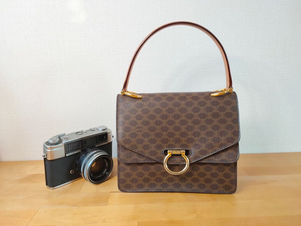 - 本物美品【セリーヌ】CELINE マカダム ヴィンテージ ミニハンドバッグ 茶色 ゴールド金具