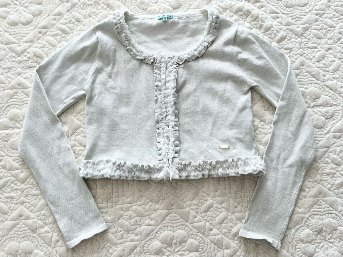 - ★1回着美品★TOCCA★レース フリル ボレロカーディガン★140★シルバー★