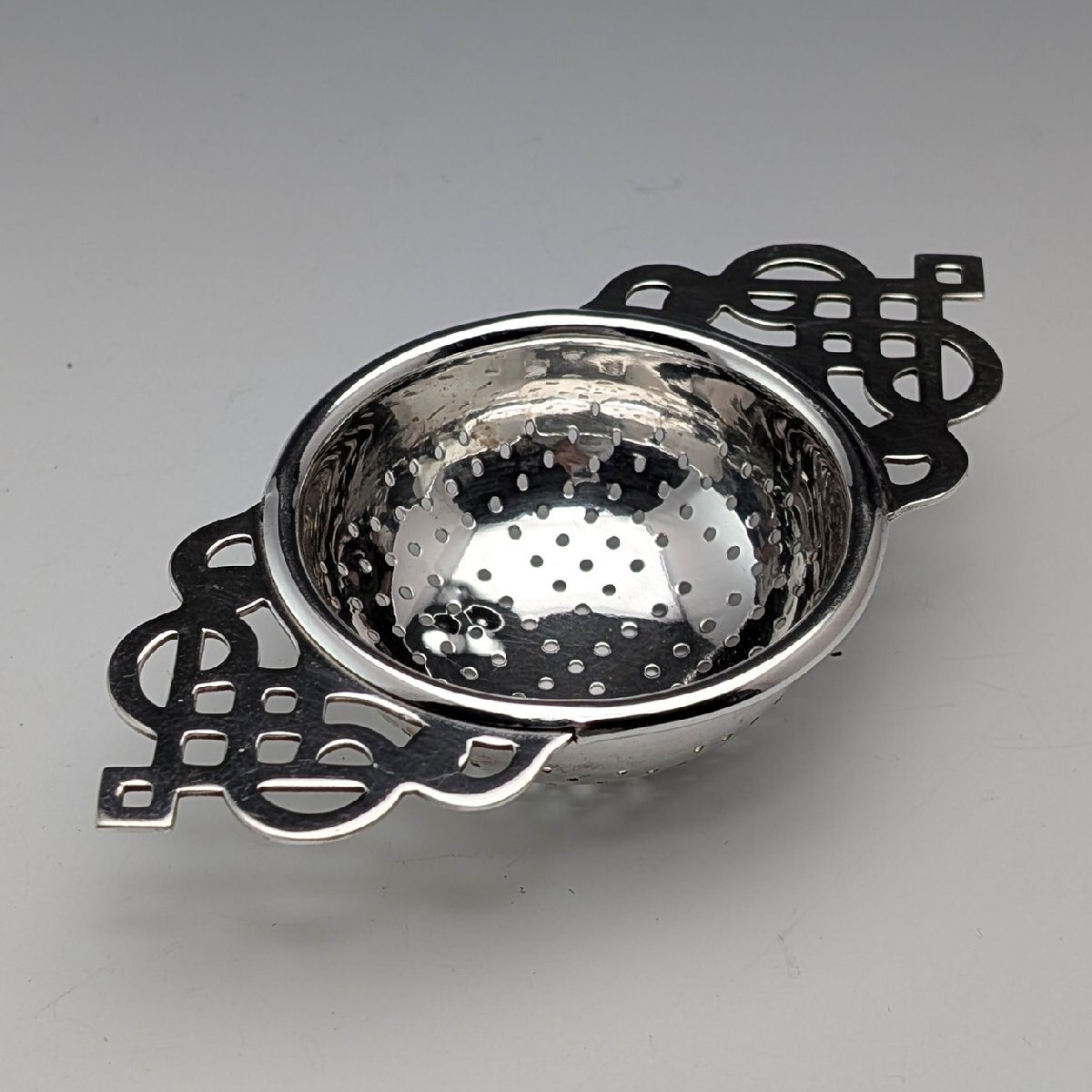 英国シルバープレート製のティーストレーナーです。
