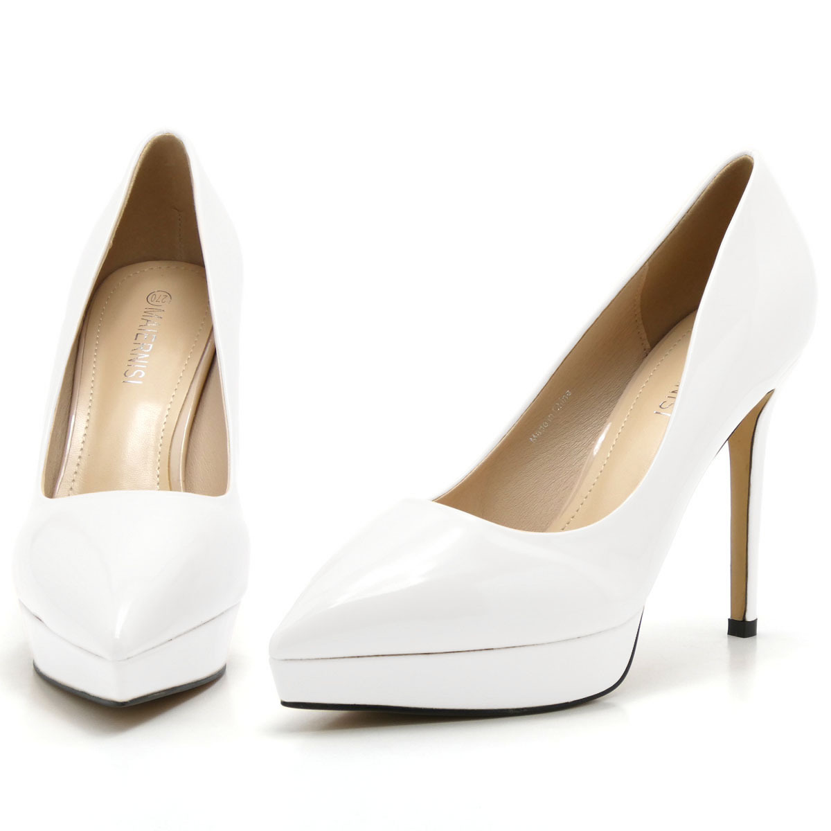 - 新品 大きいサイズ パンプス ホワイト 28cm 131400-46 エナメル調 前厚底ストーム ハイヒール