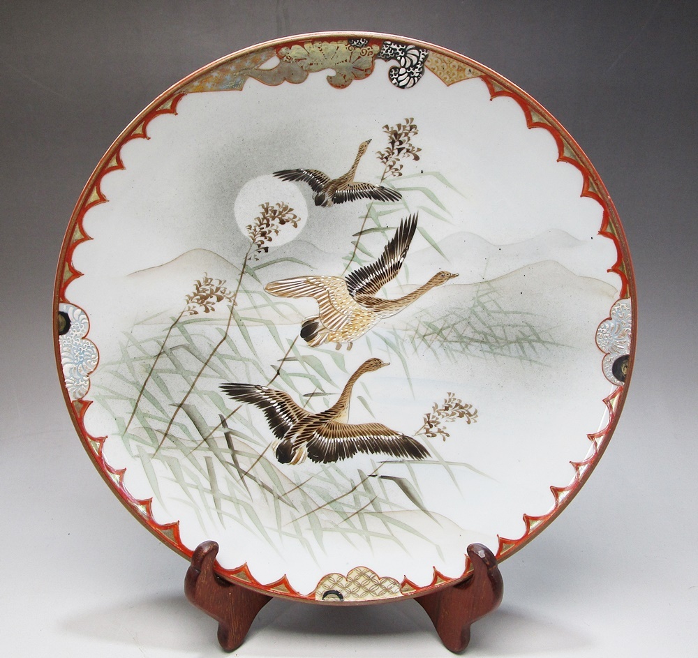 - 《ジャムルK》KKg0401-82◆九谷焼 土井製 月下飛雁図 中皿 皿 直径:23.5cm