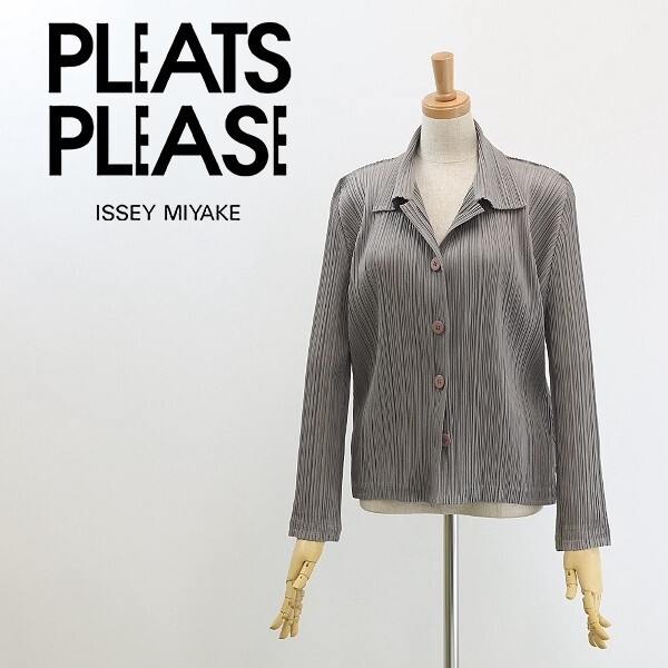 - ◆PLEATS PLEASE プリーツ プリーズ イッセイミヤケ プリーツ加工 サイドボタンデザイン ブラウス シャツ ジャケット グレー 3